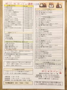 今月日替わりメニューは下記の通りです。